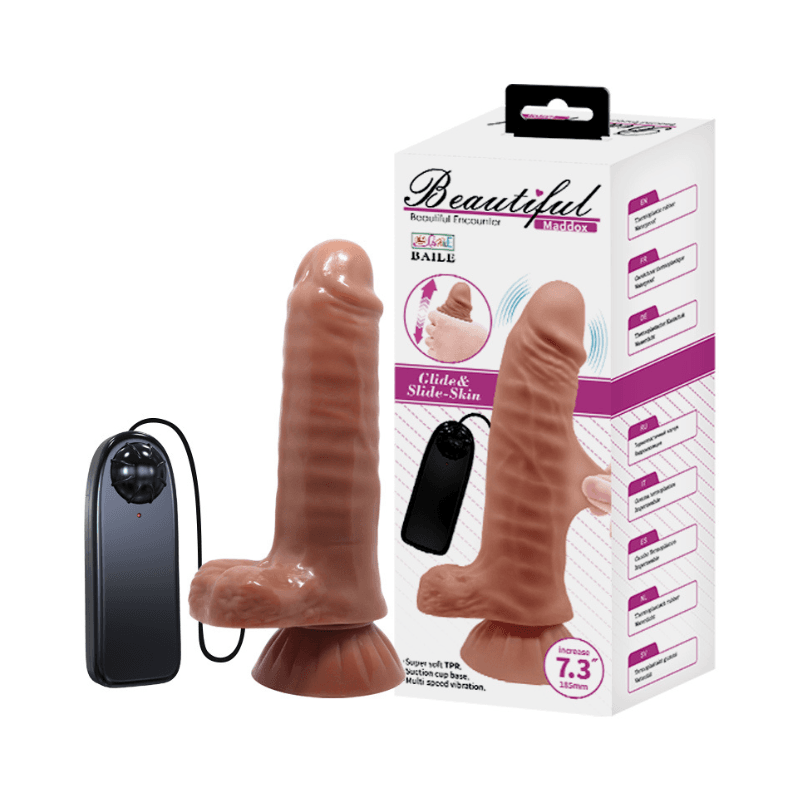 Este consolador realista TPR de piel deslizable de 7.3 pulgadas es tan realista que nunca más querrás otro consolador. Hecha de TPR premium, la capa exterior simula la textura suave de la piel del eje. El consolador está moldeado a partir de un pene real y hecho a mano con gran atención a los detalles. Este increíble consolador se ve y se siente como uno real. Explora y experimenta con la vibración sensual, este producto puede hacerlo todo. También cuenta con una fuerte base de ventosa que se adhiere a la mayoría de las superficies planas y lo hace compatible con arneses. Explore diferentes posiciones en su juego y encuentre los ángulos que mejor se adapten a sus puntos dulces.